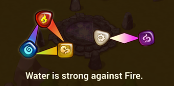 During a battle, the relationship is indicated by a colored arrow. A green arrow indicates that your current monster's attribute is strong against your opponent's monster's attribute. A red arrow indicates that your monster is weak against that attribute. A yellow arrow implies that the monsters are neutral to each other.