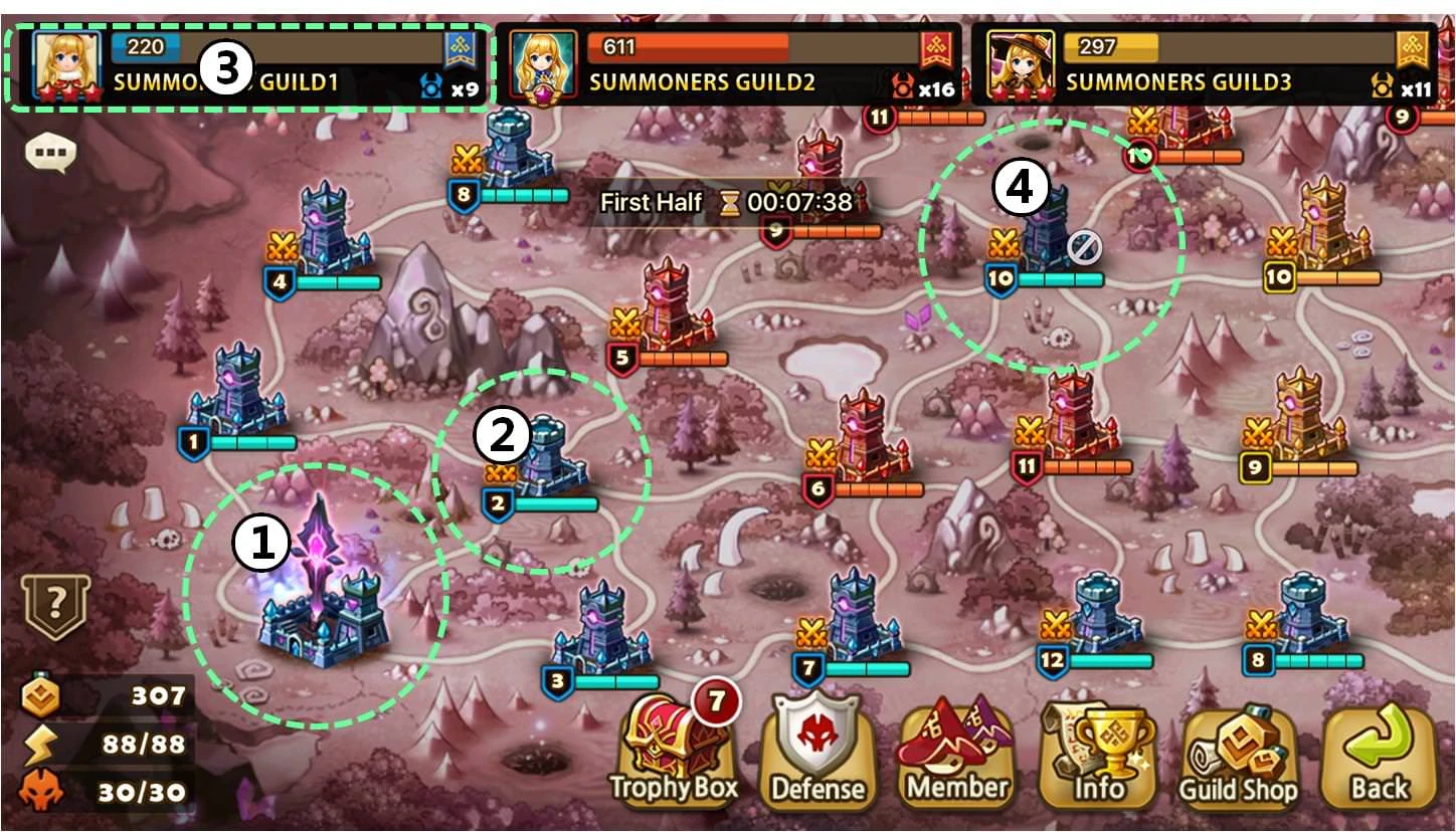 | Guild Points | Battle results | Ranking | Crystals | Guild Points | Trophy Box | |