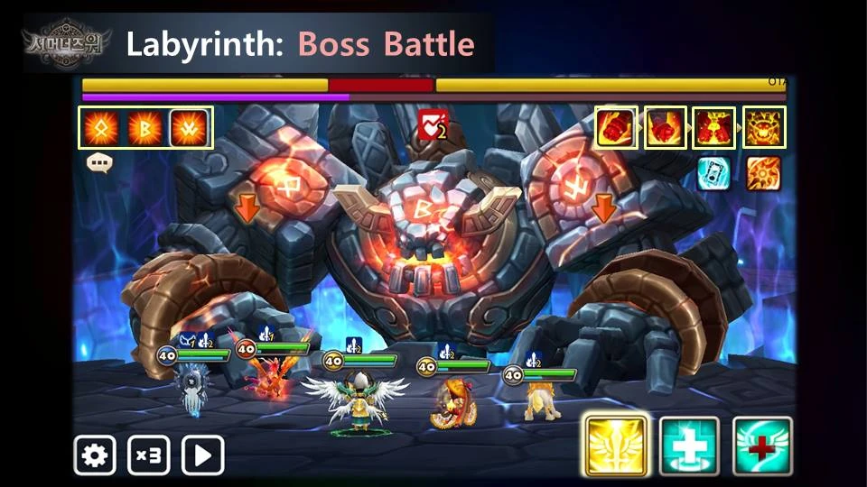 There are three mid-bosses, each of which possess only a single attack skill. However, they have the ability to absorb additional effects from the Runes on either side of them. The type of effect will depend on the Rune absorbed. Tartarus himself possess multiple attacks, and has the ability to switch among several different Rune effects during the course of battle. While players may battle Tartarus before defeating the mid-bosses, Tartarus himself does receive a bonus from each mid-boss still standing, based on the following: